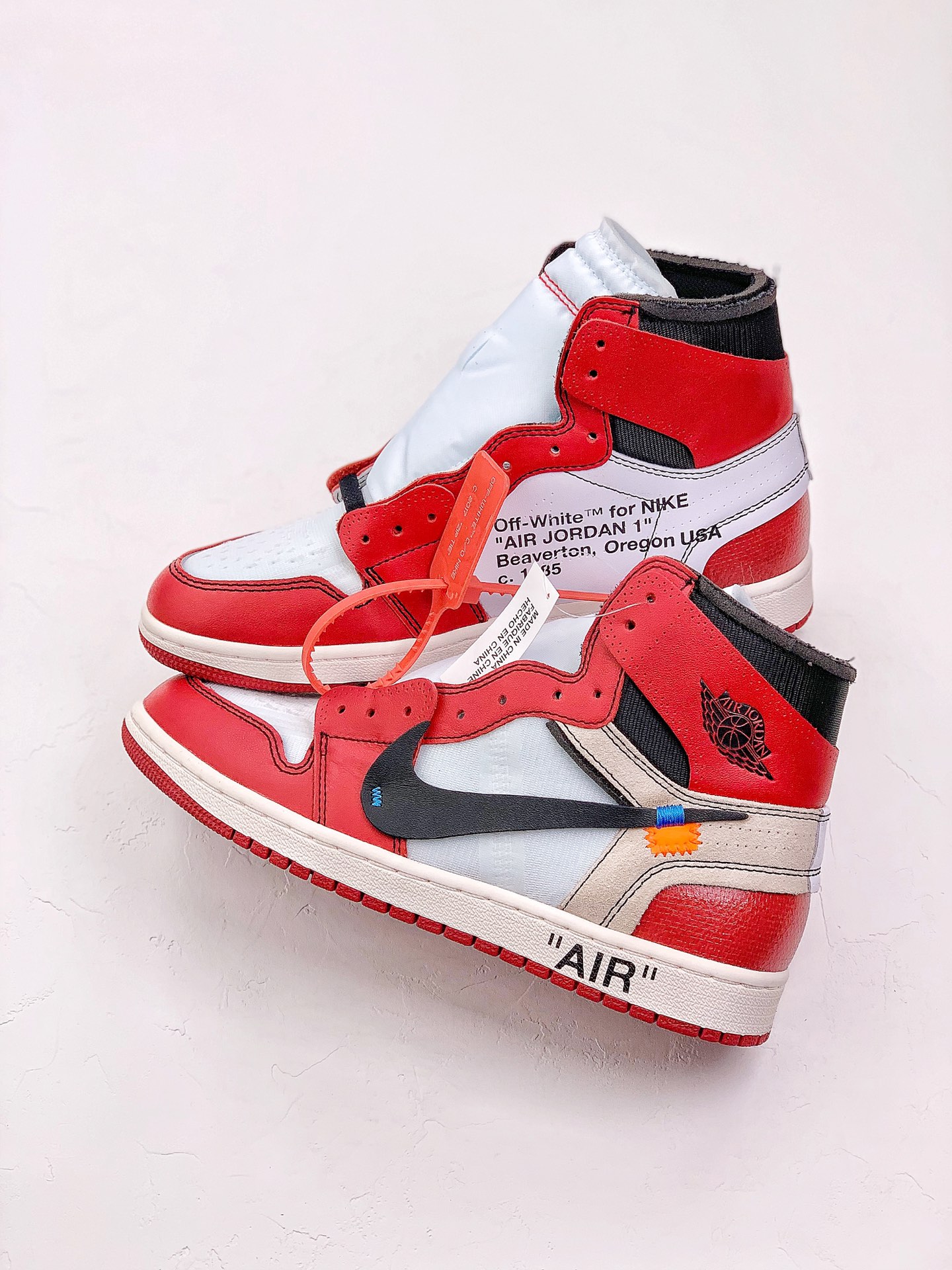 The JORDAN 1 Off White Chicago was released on November 9, 2017, It is a model from the "the ten" series, a collaboration between the Jordan Brand and Virgil Abloh, the founder of Off-White. The design of this shoe is inspired by the classic "Chicago" colorway of the Air Jordan 1, retaining the classic combination of red, white, and black, paying homage to Michael Jordan's early days with the Chicago Bulls.